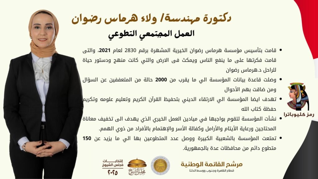 - قامت بتأسيس مؤسسة هرماس رضوان الخيرية المشهرة برقم 2830 لعام 2021، والتى قامت فكرتها على ما ينفع الناس ويمكث فى الارض والتي كانت منهج ودستور حياة للراحل د.هرماس رضوان