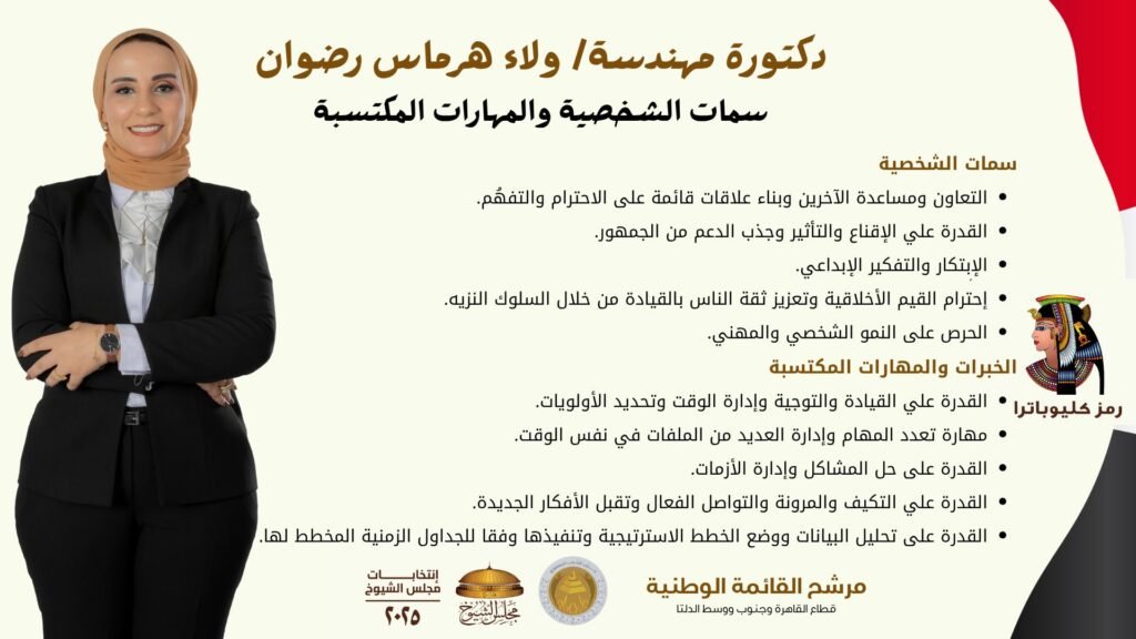 - القدرة علي القيادة والتوجية وإدارة الوقت وتحديد الأولويات